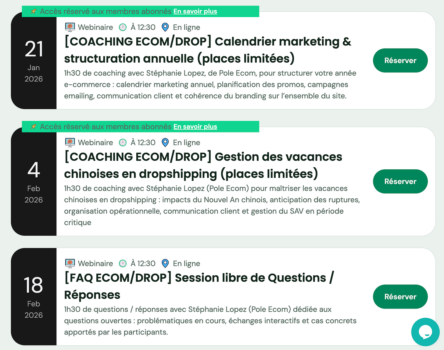 Conférences et coachings SEO, Ecom, Drop, Juridique seront organisés. Voici vos RDV des semaines qui viennent avec un gros focus e-commerce :